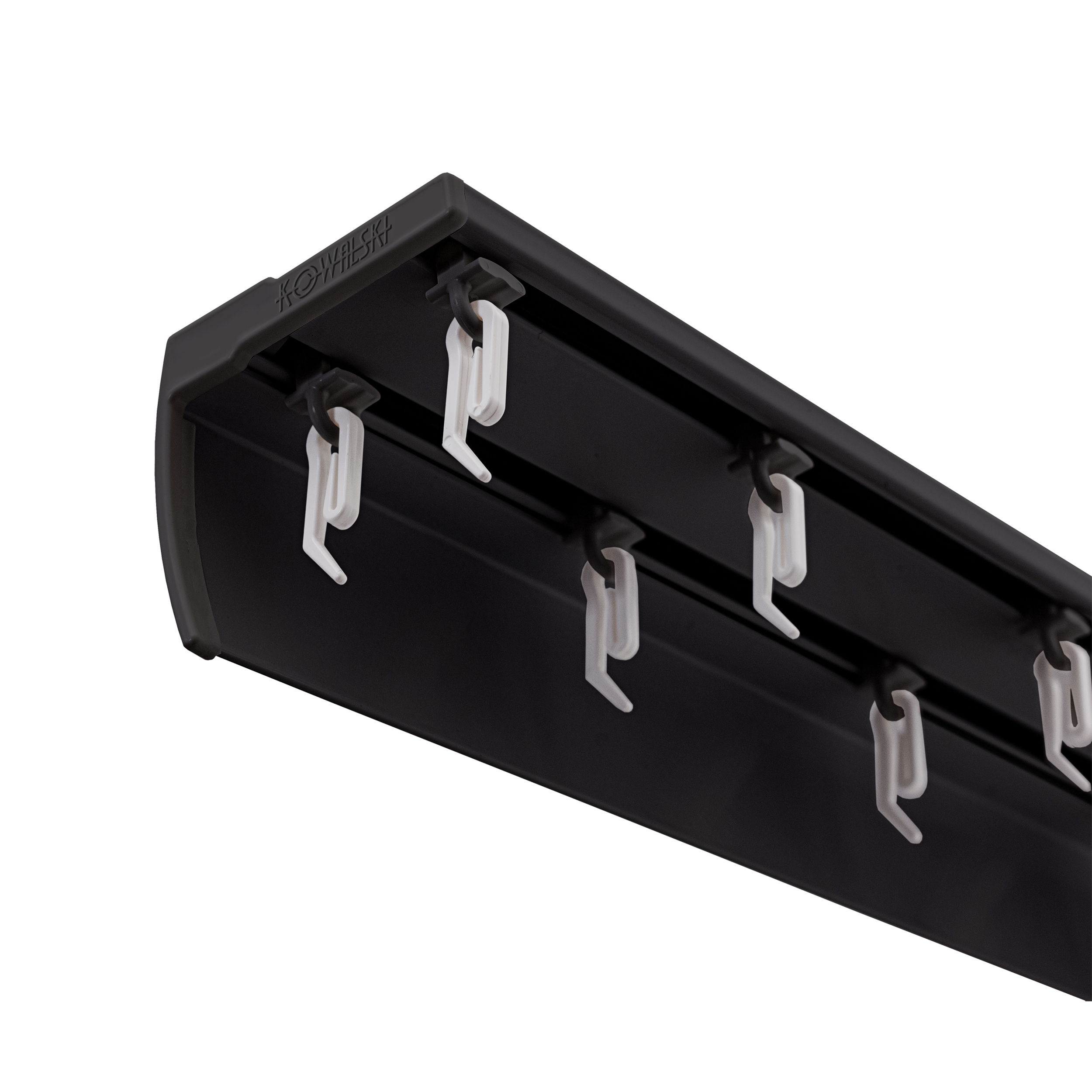 przy długościach od 250 cm – 500 cm dwie szyny z osłoną łączone łącznikiem (połączenie wykonywane jest wewnątrz profilu nie przeszkadza w przesuwaniu ślizgów)