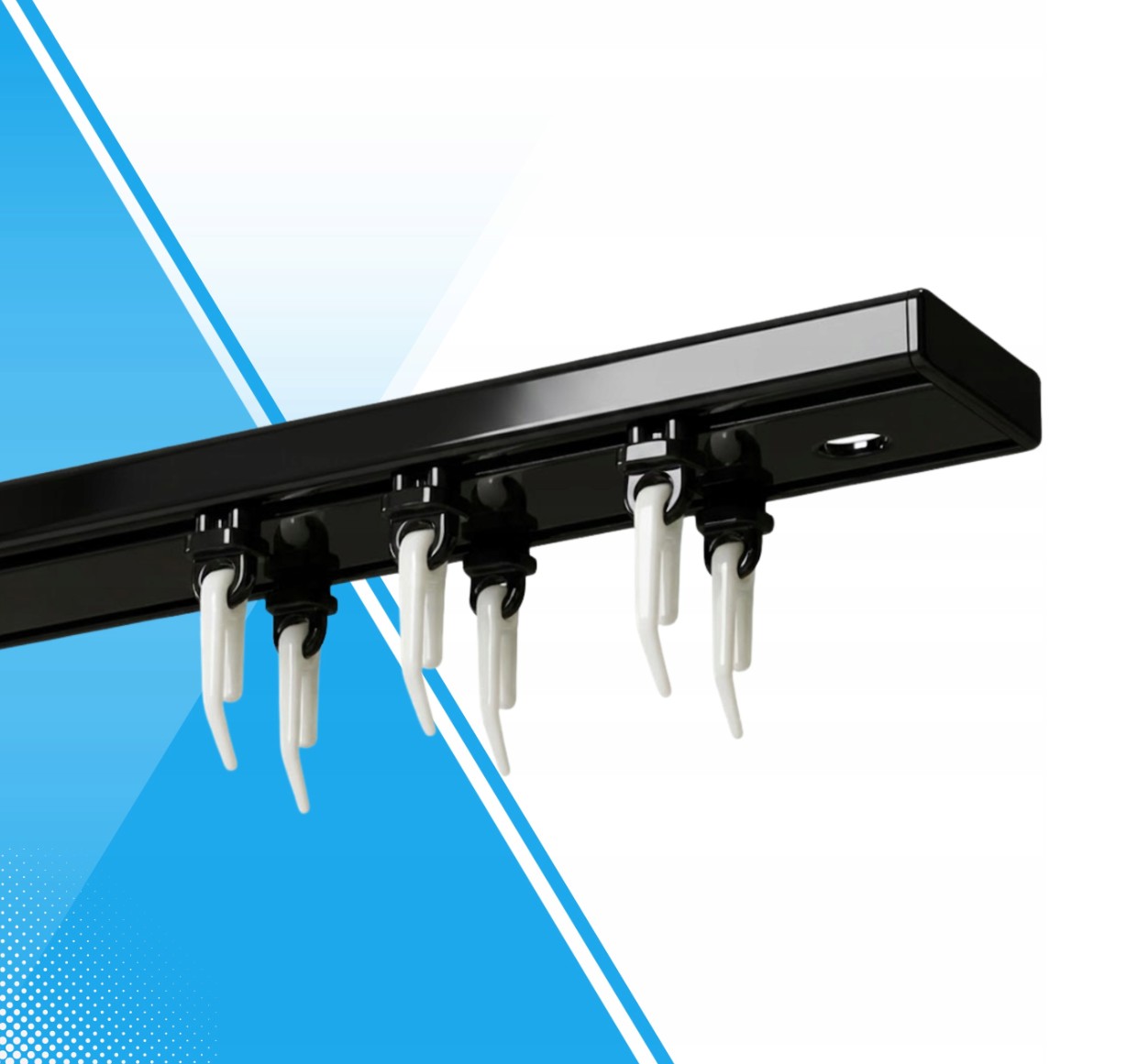 przy długościach od 510 cm – 750 cm trzy szyny łączone łącznikami (połączenie wykonywane jest wewnątrz profilu nie przeszkadza w przesuwaniu ślizgów)