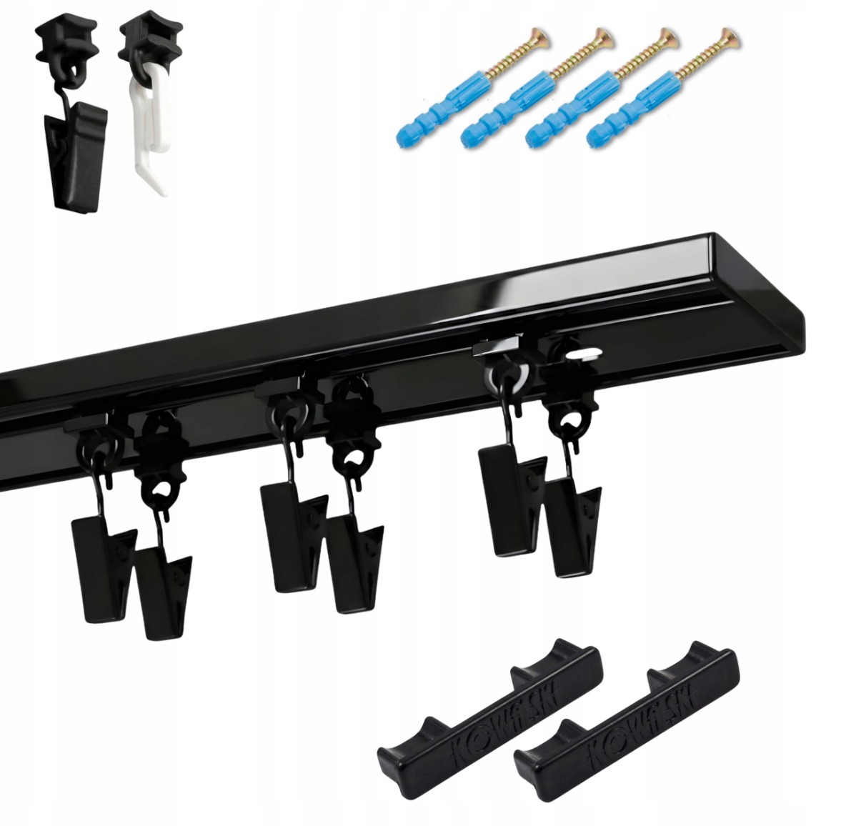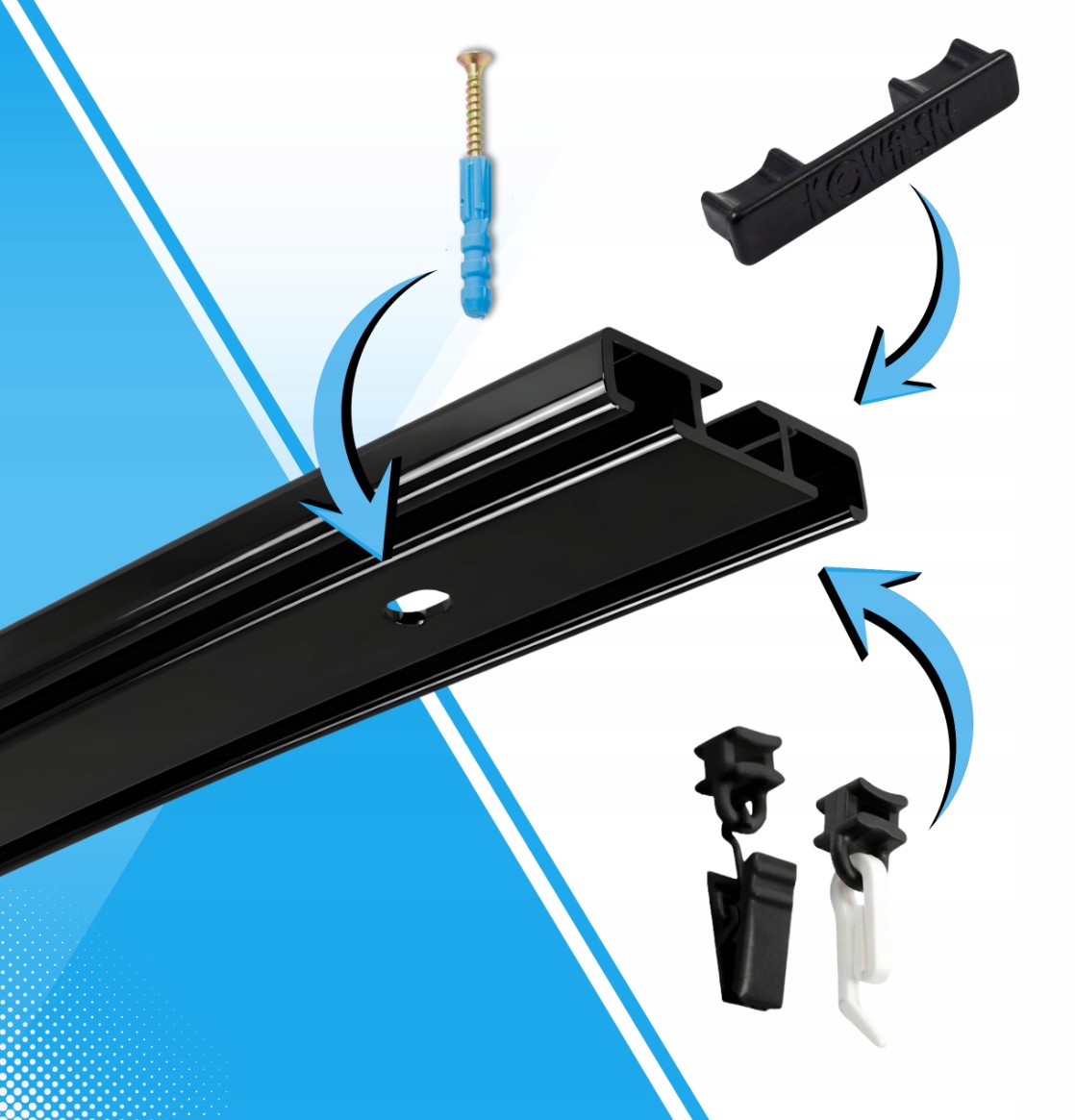 Szyna sufitowa aluminiowa czarna podwójna mocowana na kołki rozporowe