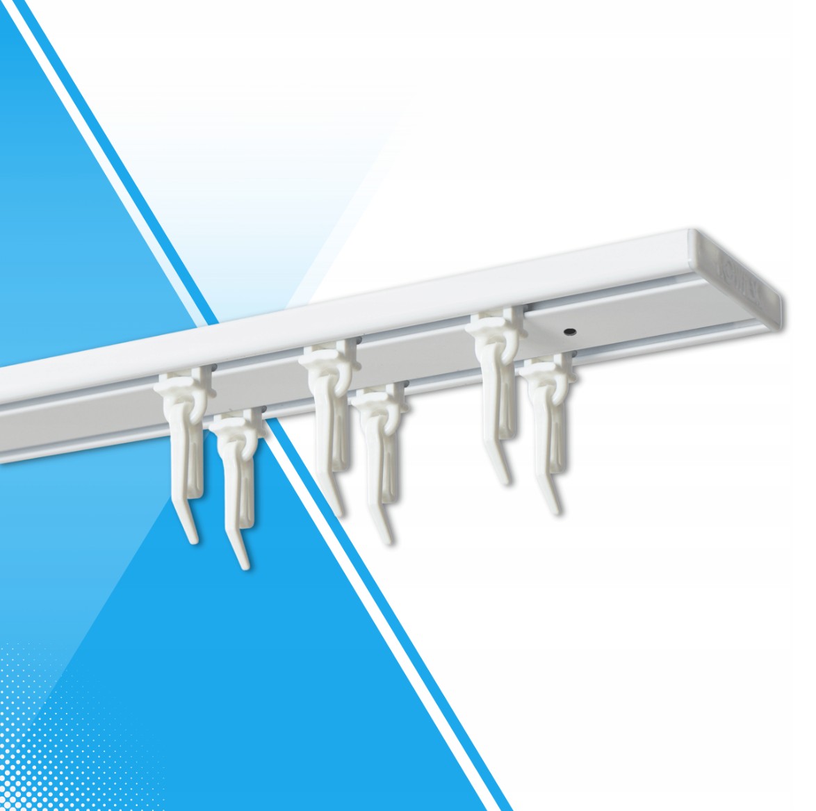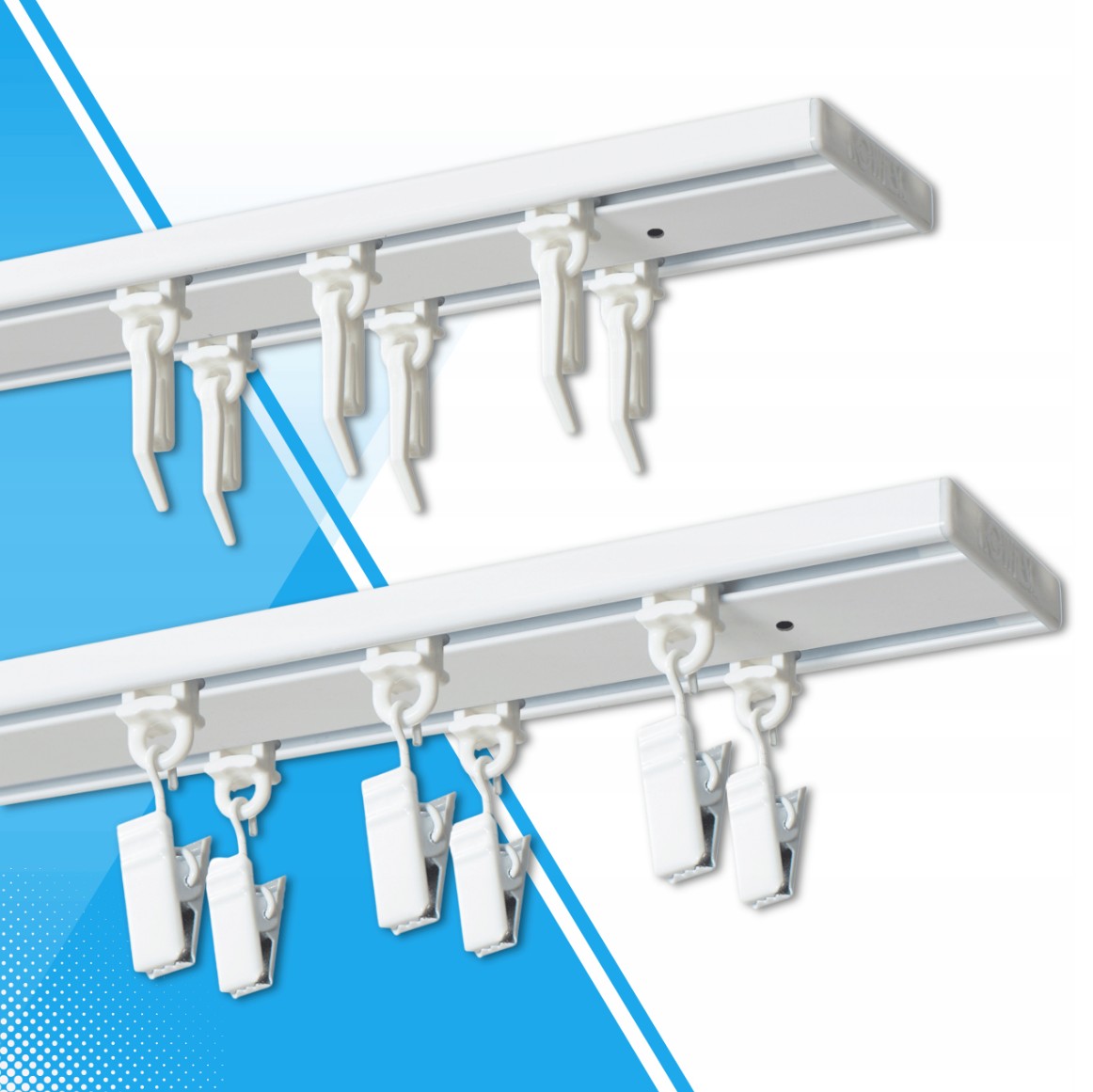 przy długościach od 260 cm – 500 cm dwie szyny łączone łącznikami (połączenie wykonywane jest wewnątrz profilu nie przeszkadza w przesuwaniu ślizgów)