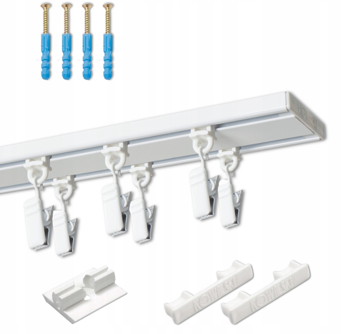 Przykład : szyna aluminiowa dwutorowa 250 cm – ilość ślizgów 50 sztuk, szyna 100 cm – ilość ślizgów 20 sztuk